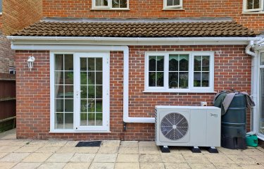 AIR SOURCE HEAT PUMP Central heating and hot water provided by Midea 10 kW Air Source Heat Pump.